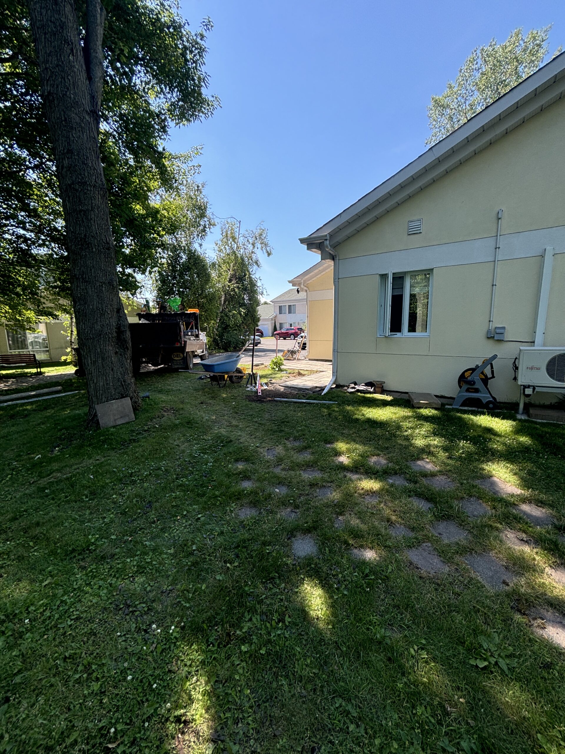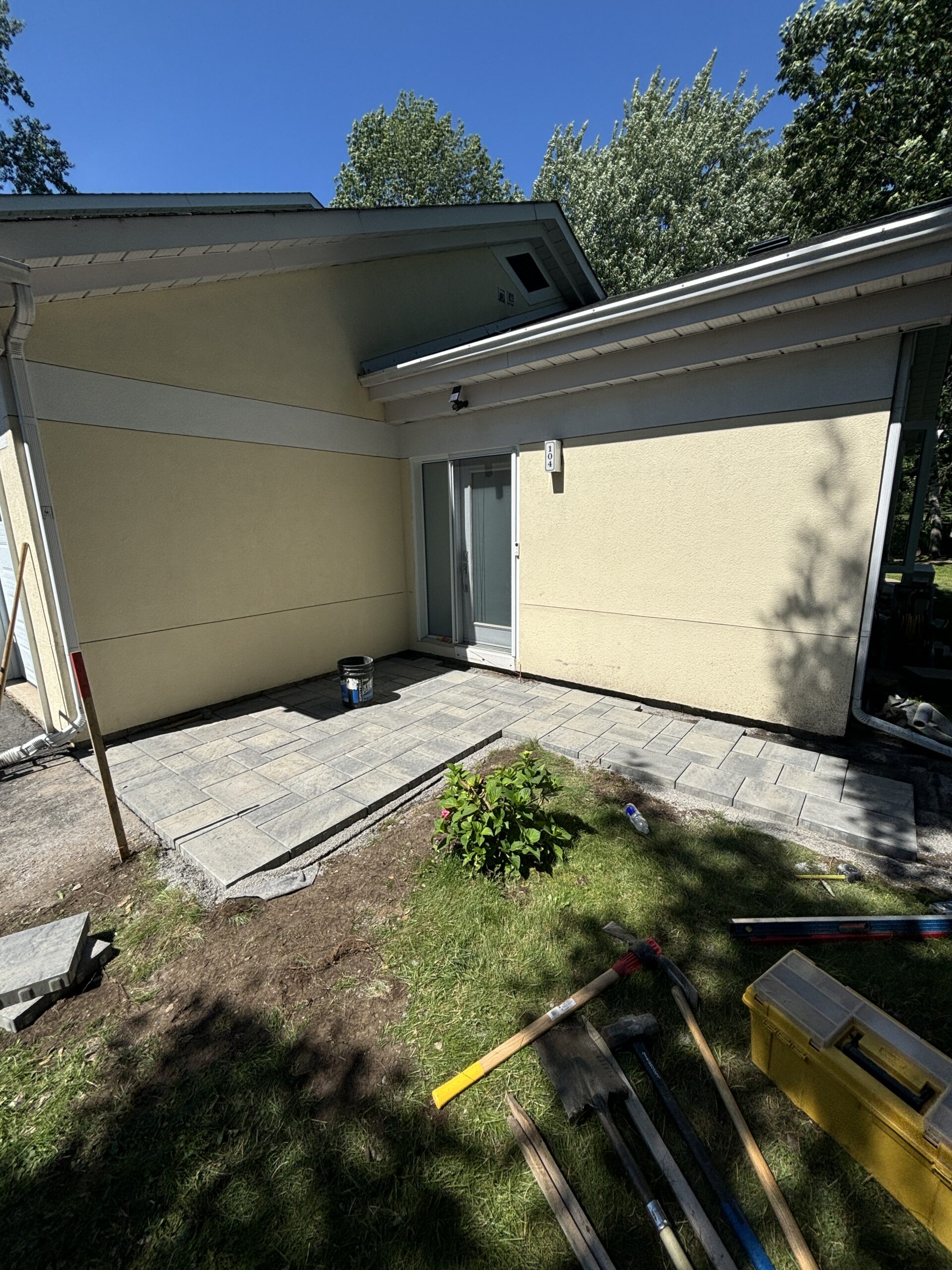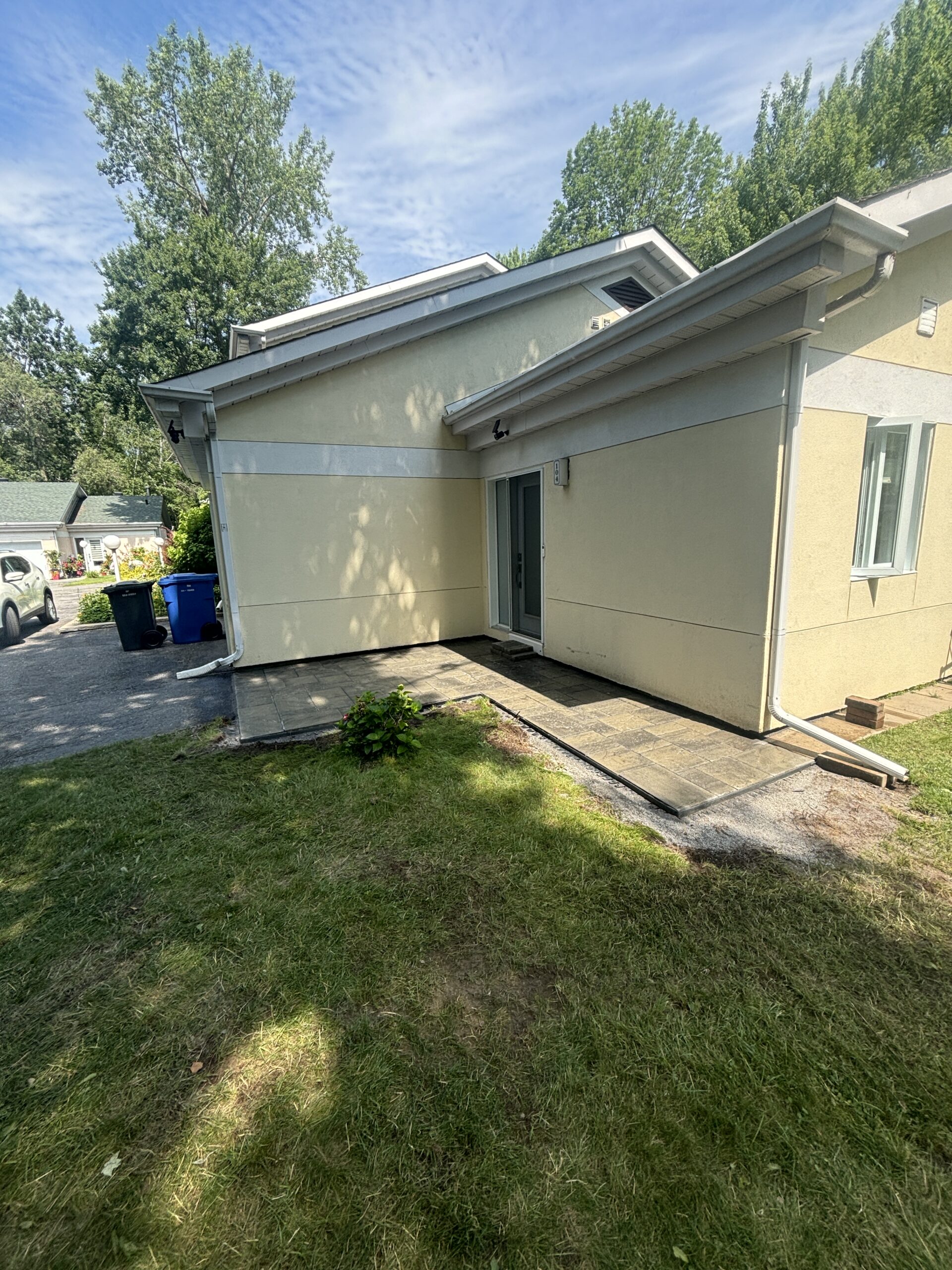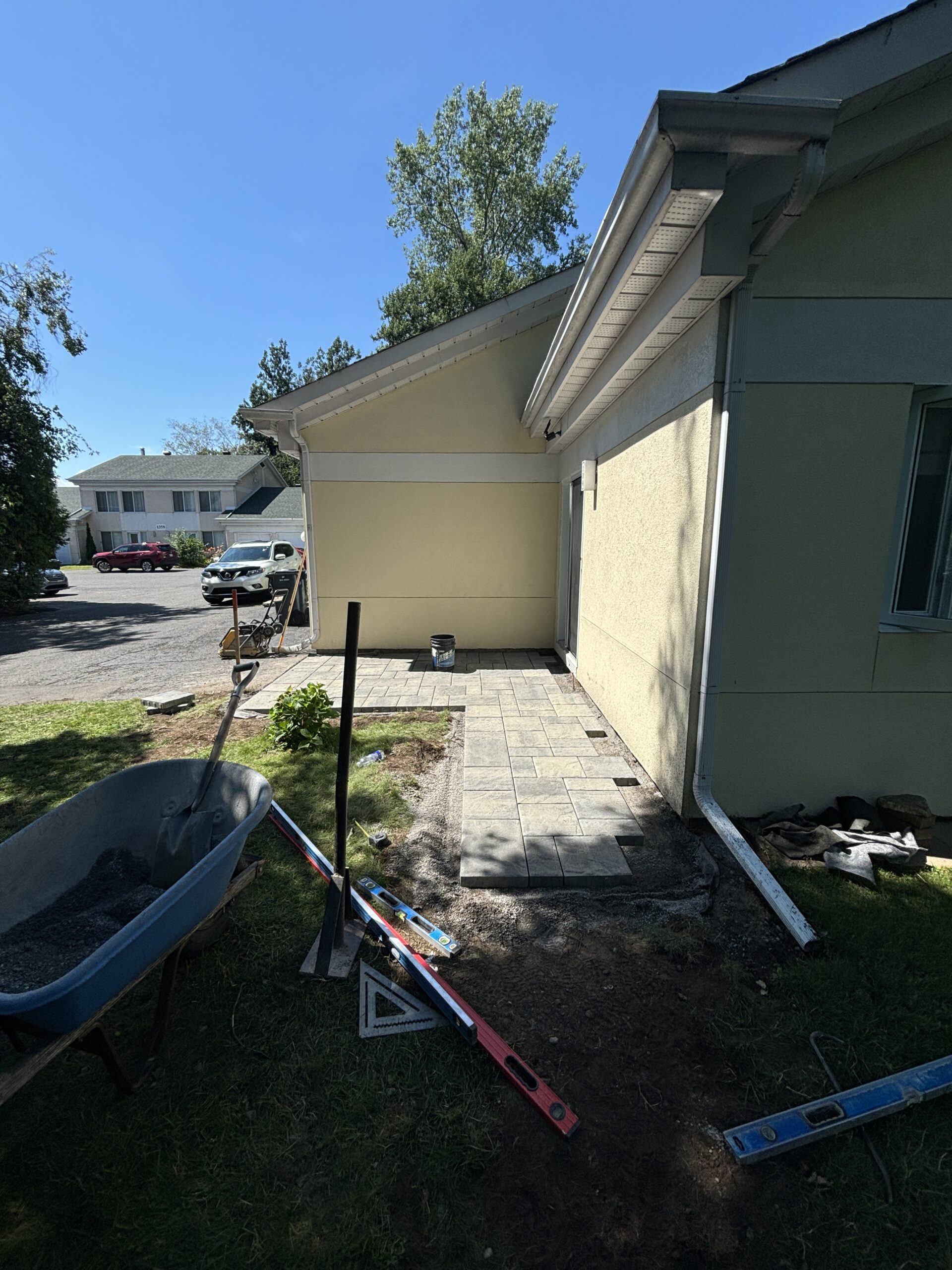 In this development, we completed multiple landscaping projects for both the front and back of several homes. Our work featured modern stonework, extended patios for enhanced outdoor living, and expertly prepared driveways through excavation, ensuring a solid foundation for asphalt installation.
